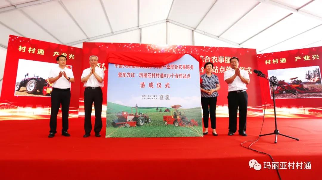 致辞后,刘娜、黎晓煜、任庆虎、郑士民四位领导共同为“香蕉视频污视频全程机械化+香蕉视频污视频产业综合农事服务暨东方红•香蕉成人网视频村村通619个合作站点落成仪式” 揭牌。
