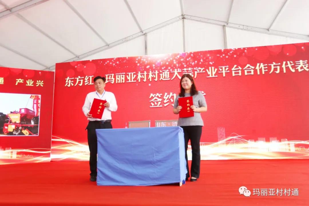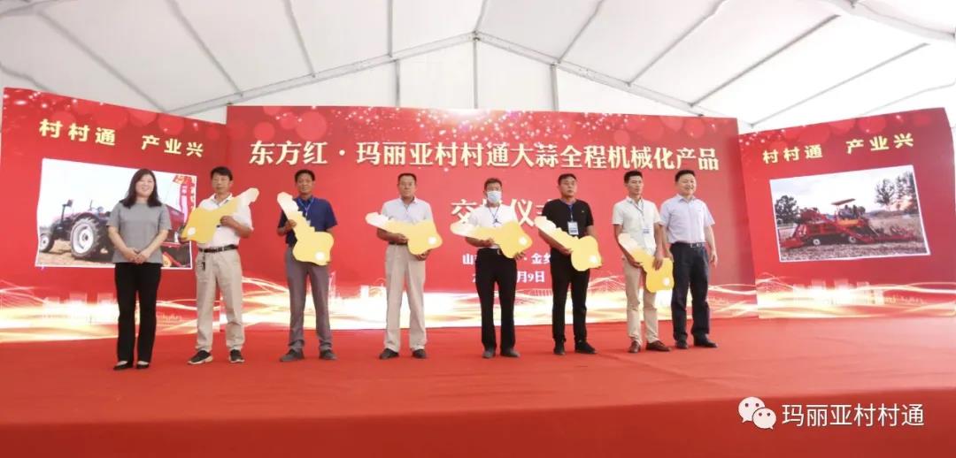 中国一拖集团副董事长蔡济波、山东省香蕉成人网视频村村通农业发展有限公司总经理 辛丽 为六位东方红•村村通产业平台合作站点代表交钥匙,完成了东方红·香蕉成人网视频村村通香蕉视频污视频全程机械化产品交机仪式。